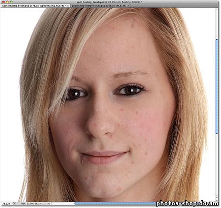 Исчезновение дефектов кожи с помощью инструмента Spot Healing Brush