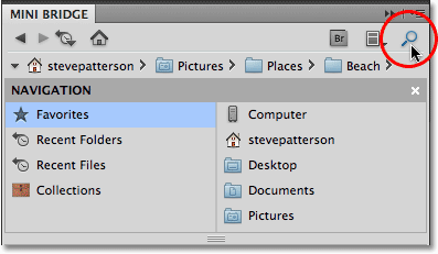 Так весь смысл Mini Bridge, чтобы сделать поиск и открытие изображения быстро и удобно, Adobe хотел, чтобы убедиться, что доступ к самой Mini Bridge также удобно, как это возможно, так они добавили несколько различных способов, чтобы добраться до него. Если у вас есть время, чтобы убить, вы можете подняться на Файл меню в верхней части экрана и выберите новый Обзор в Mini Bridge команды: