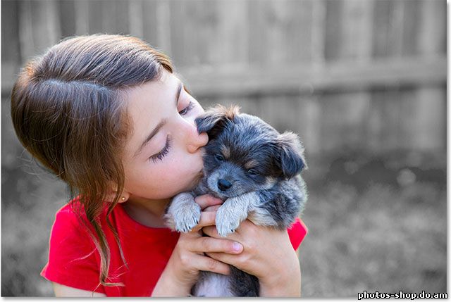 Вот образ, который я буду работать с ( девушки щенок фото из Shutterstock). Обратите внимание, что девочка и щенок как в фокусе, а область за них размыто, точно рода изображения, новой области выбора инструмента Photoshop была разработана для: