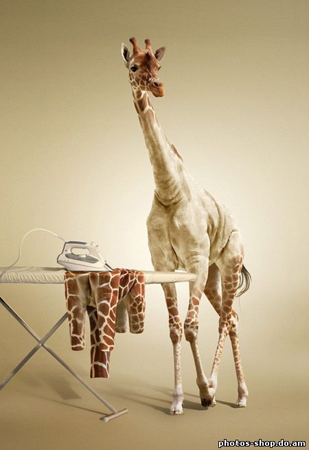 Вы когда-нибудь хотели увидеть, как выглядит жираф без пятен? Сегодня, в уроке Фотошоп у вас есть возможность удовлетворить свое любопытство в этом вопросе. Мы разденем жирафа, показав всем его однотонный подшерсток, а пятнистую шкурку приведем в порядок, разгладив ее на доске утюгом.