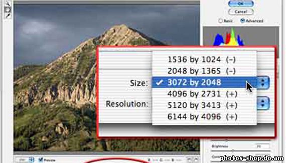В Photoshop Camera Raw включает в себя всплывающее меню с именем Size что давайте вы измените число пикселей в изображении. Но это лучше, чем изменение размера с командой размер изображения в Photoshop? Не резко. Расположенный в нижнем центре окна Camera Raw плагина вы находите размер всплывающего меню. По умолчанию, меню установлен в размерах пикселей изображения, как, снятое камерой. Тем не менее, у вас есть возможность изменения размера изображения для (для большинства камер) 50%, 66,7%, 133%, 167%, 200%.