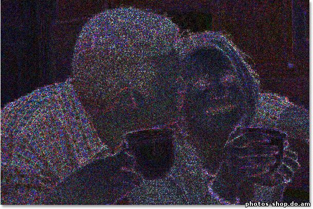 Чтобы точно понять, что происходит с нашими изображений, мы будем использовать в Photoshop Разницарежим наложения слоя. Режим Разница смесь получила свое название из-за того, что он смотрит на различия между двумя слоями. Любые участки в обоих слоях, которые точно так же выглядят как чисто черный, а области, которые отличаются в некотором роде появляются как странные цвета. Режим Разница смесь не используется очень часто вне мира спецэффектов, но это делает большую работу, показав нам, как много мусора (да, я сказал, мусор) мы добавляем к нашим JPEG изображений, когда мы сжать их.Теперь, это не означает, что мы все должны перестать сжимать наши фотографии.
